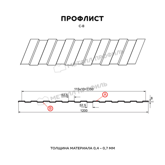 Профлист Металл Профиль С-8 0,45 Полиэстер RAL 9003/9003 Белый | A